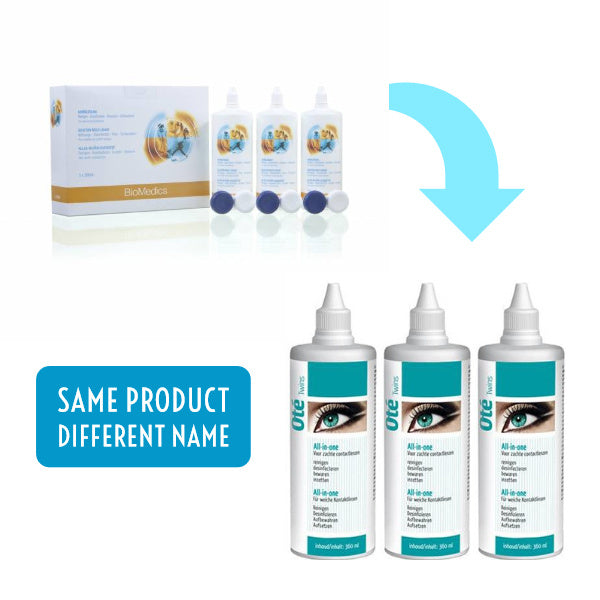 Pida fácilmente Biomedics All-in-One 3x360ml en línea en WEBLENS y benefíciese de las ventajas de una solución de limpieza efectiva y económica para sus lentes de contacto blandas. ¡Entrega rápida y portalentes adicionales incluidos!